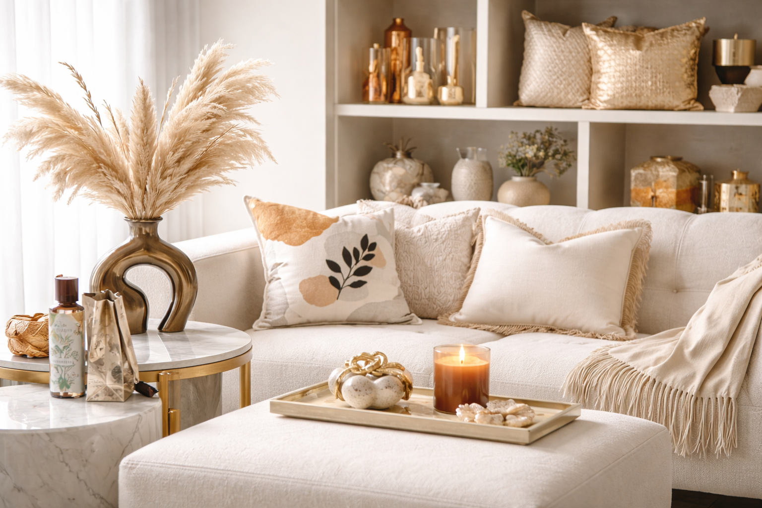 Chaque coussin, chaque vase, chaque parfum est imaginé pour s’accorder naturellement et créer une ambiance qui vous ressemble. Nous croyons que la décoration ne se limite pas à embellir un espace, elle révèle une atmosphère, une émotion, une signature.